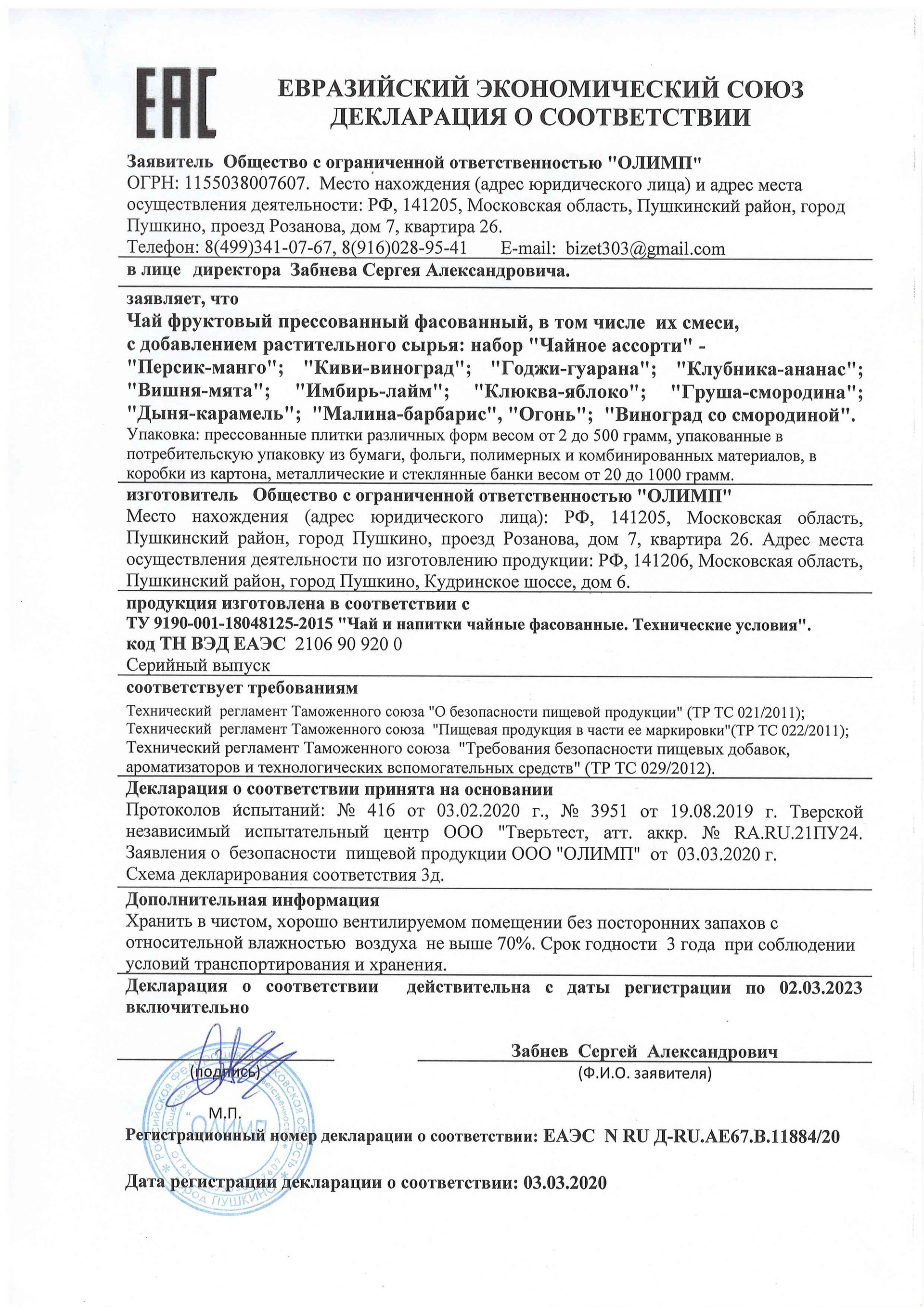 Отдельную благодарность хотим выразить менеджерскому составу компании «Прессованный чай» за предельную внимательность к клиенту! С каждым заказом дополнительно приезжают пробники новинок, что очень помогает в формировании нашего ассортимента прессованного чая.